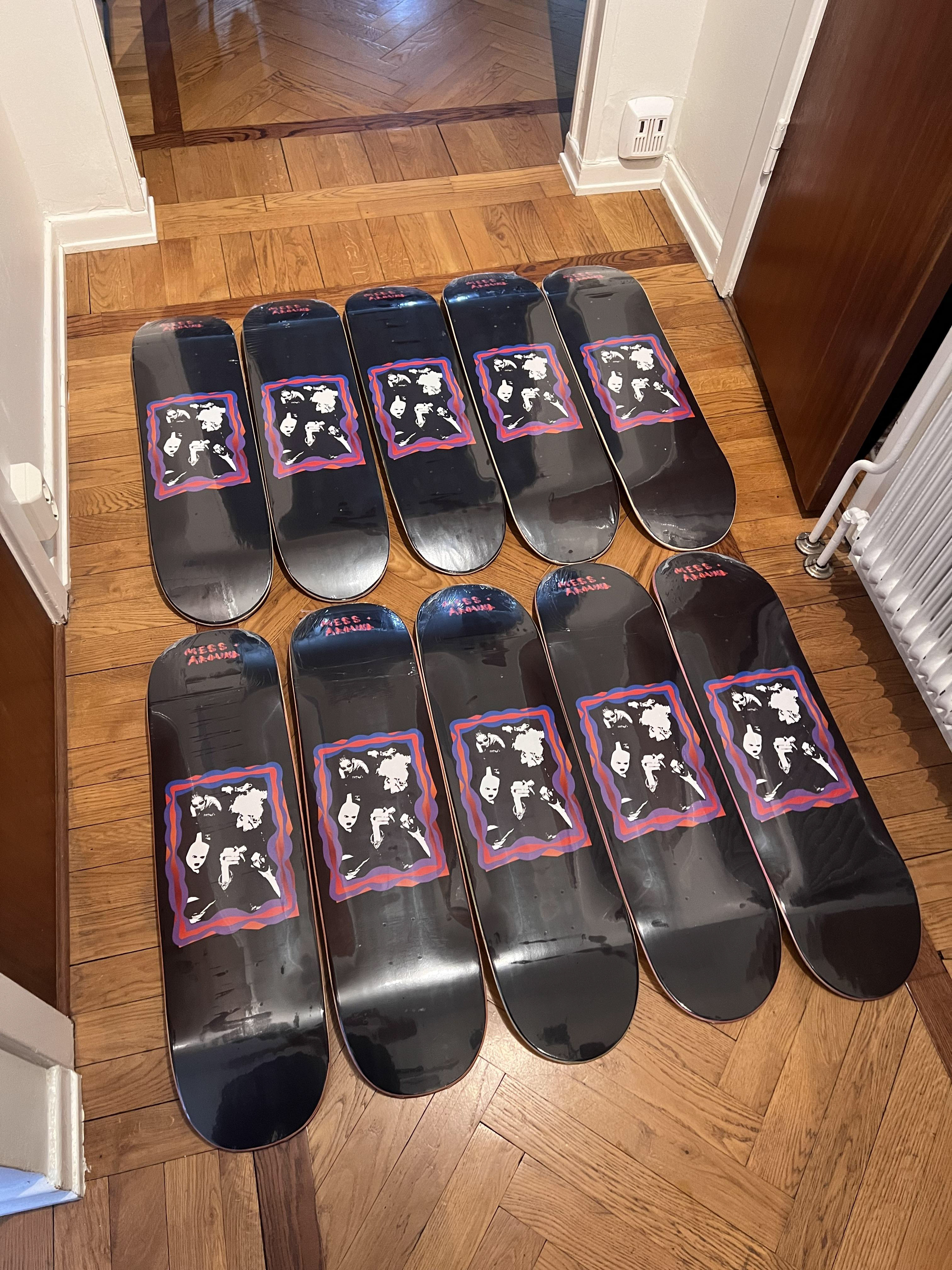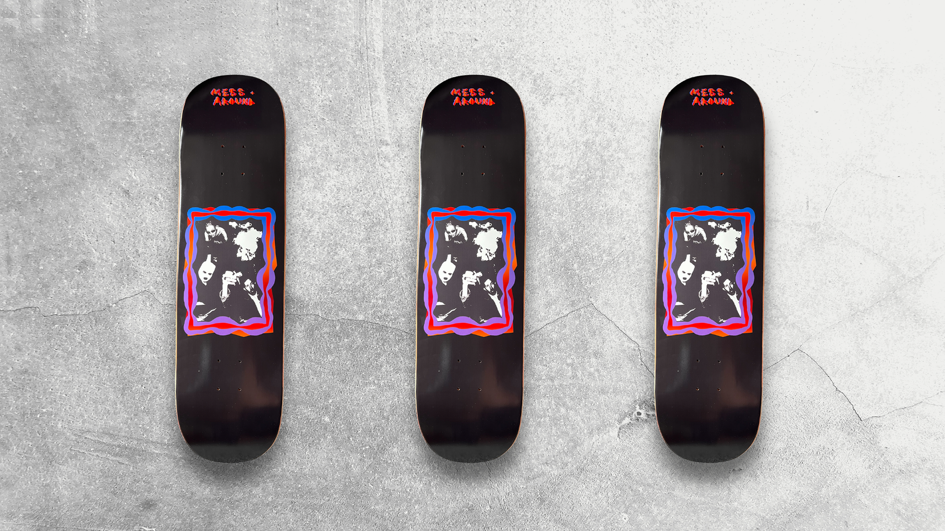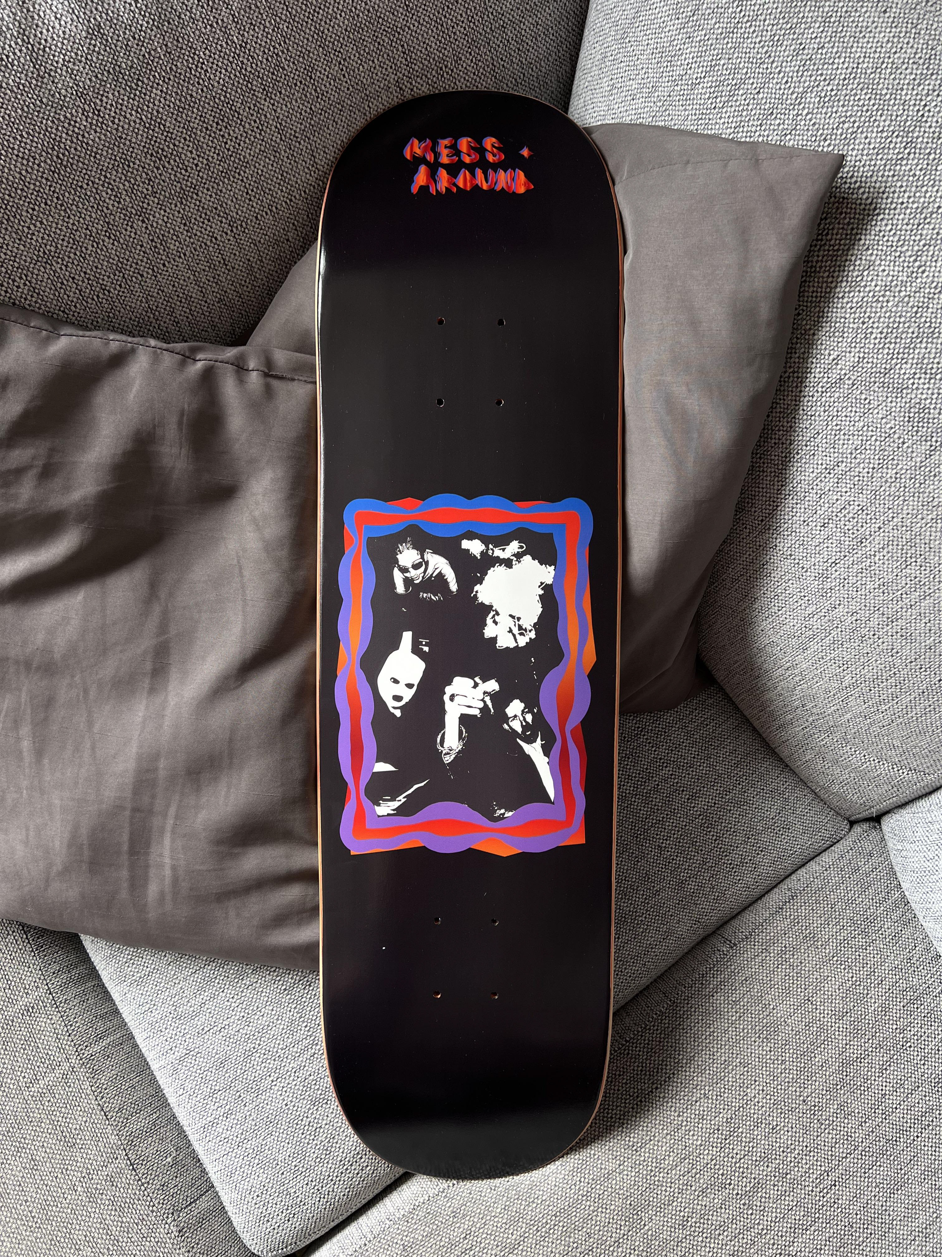 graphic design & production of mess around's first skateboardS ever MADE. A TOTAL OF 15 BOARDS WERE PRODUCED DURING THE SUMMER OF 2024.